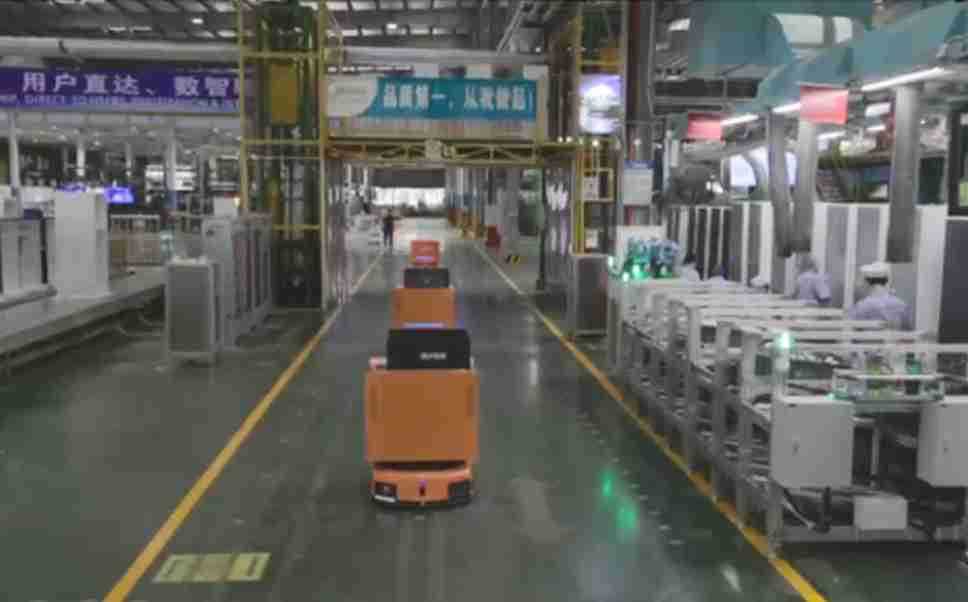 为车载冰箱物流配送打造的智能解决方案,,包含产中物流通过潜伏举升AMR搬运至线边,,,,产后成品物流智能仓储,,流程包含产中物流智能齐套入库,,,,线边安灯叫料AMR智能配送至线边,,成品入库、、出库,,,,通过无人堆高车机器人,,,智能仓储管理替代人工作业管理,,,实现更高存储、、更高效率、、、更具柔性化的解决方案。。